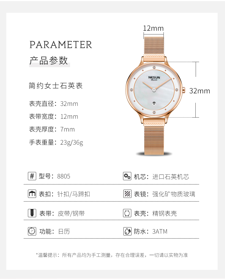 颜色 : 玫白/玫黑/钢白